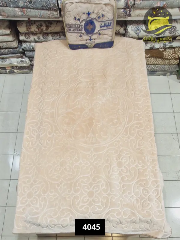 پتو یکنفره برجسته گلبافت رنگ کرم
