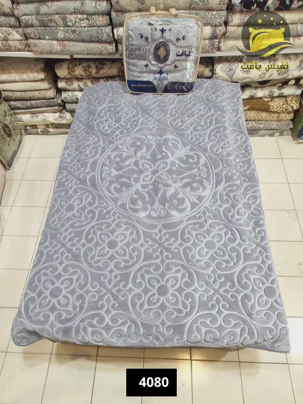 پتو یکنفره گلبافت رنگ طوسی روشن
