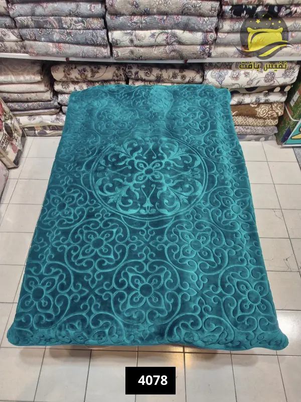 پتو یکنفره برجسته گلبافت رنگ آبی کاربنی